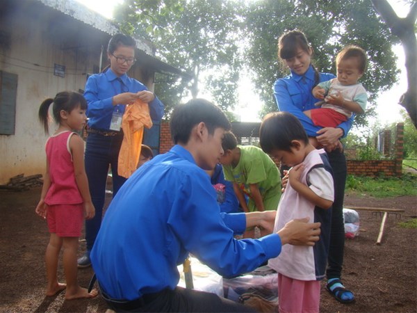 Hình 4: Tặng quàn áo cũ cho thiếu nhi địa phương
