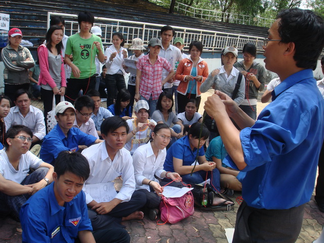 Hình 3: Các bạn sinh viên, Đoàn viên đang chuẩn bị chơi trò chơi tập thể