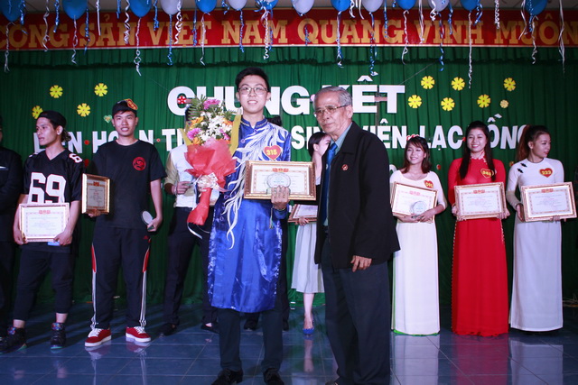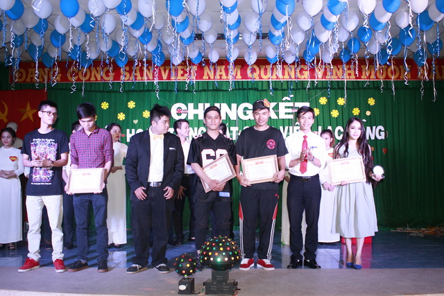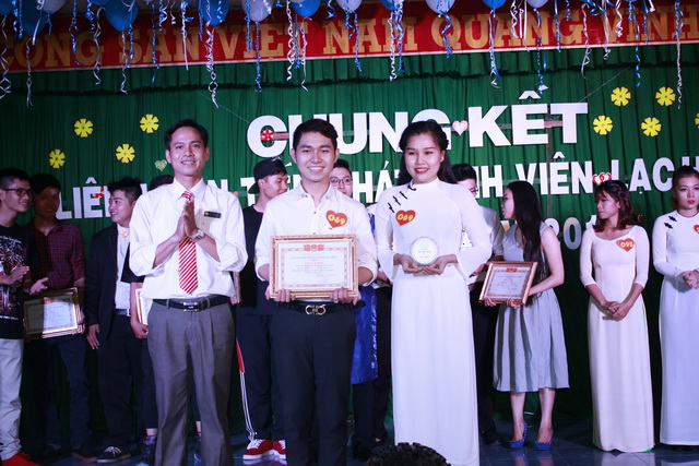 Hình 3: Đ/c Trần Tiến - Chủ tịch Hội Sinh viên trường trao giải thưởng cho các tiết mục Múa, nhảy
