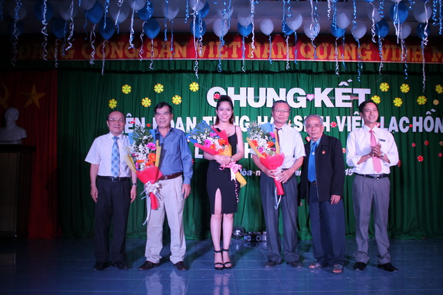 Hình 1: Đại diện Đảng ủy, Ban Giám hiệu và Đoàn Thanh niên tặng hoa Ban Giám khảo trong đêm chung kết