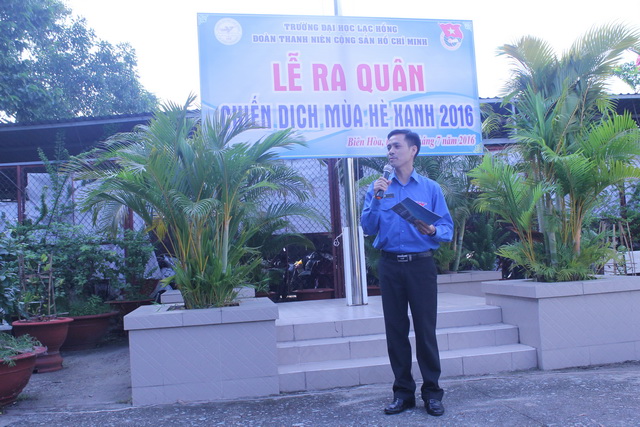 Đến dự buổi lễ ra quân Đ/c Nguyễn Trùng Phương – Bí thư Đảng ủy nhà trường đã phát biểu ôn lại truyền thống của tuổi trẻ thời kỳ chiến đấu hy sinh vì độc lập của tổ quốc để khơi dậy trong lòng các bạn sinh viên tình nguyện tinh thần tình nguyện vì cuộc sống cộng đồng, góp phần nâng cao hiệu quả của các hoạt động mà chính các bạn sinh viên là người sẽ thực hiện tại chiến dịch; đồng thời ghi nhận những đóng góp của phong trào tình nguyện Mùa hè xanh trong những năm vừa qua và chúc các bạn sinh viên tình nguyện của trường đạt được nhiều thành công trong chiến dịch năm nay.