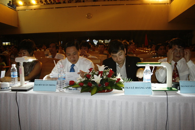 Hình 4: Th.s Nguyễn Hồ Xuân Hương (bìa phải) - Trưởng ban tổ chức cuộc thi và Đ/c Lê Sơn Quang (bìa trái) - Chủ tịch Hội sinh viên trường