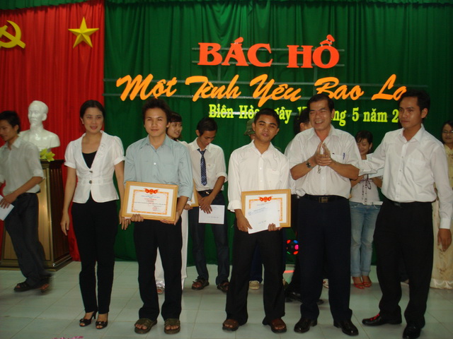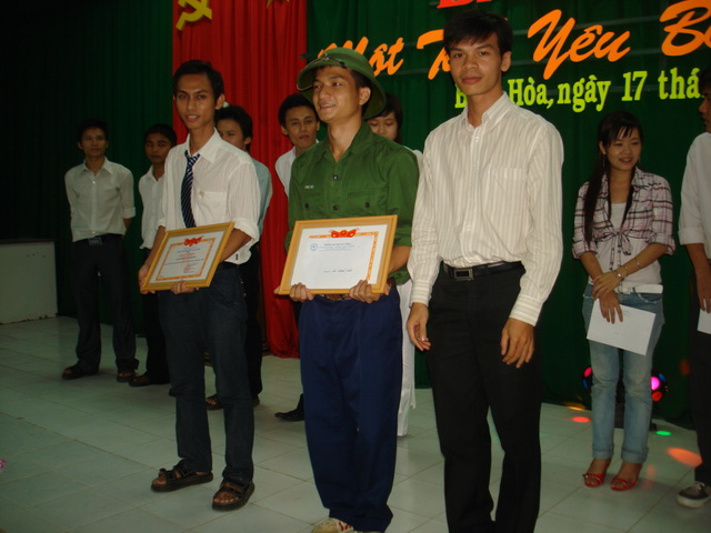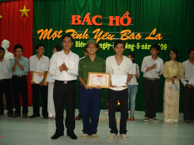 Hình 13: Đ/c Trần Tiến - P. Bí thư Đoàn trường trao giải khuyến khích