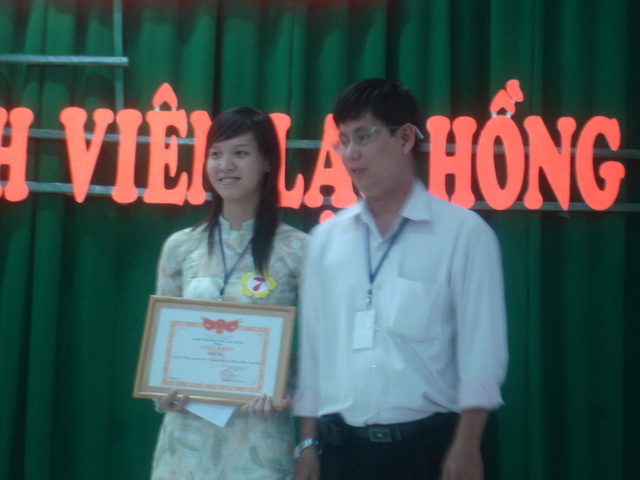Hình 8: Thầy Th.s Lâm thành Hiển đang trao giải ba cho thí sinh Nguyễn Ngọc Ngà