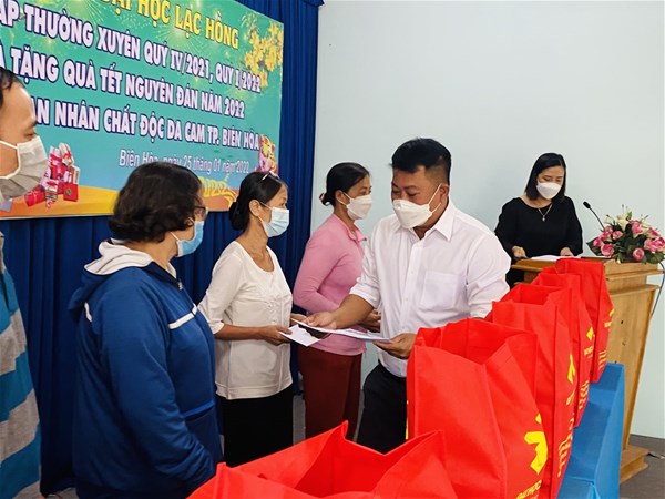 Tổng kinh phí dịp này trao cho 90 nạn nhân gồm quà Tết, trợ cấp quý IV/ 2021, quý I/2022 là: 268 triệu đồng; đây là kinh phí từ Trường Đại học Lạc Hồng và gia đình Cô Đỗ Thị Lan Đài (Chủ tịch Hội đồng trường), Thầy Đỗ Khôi Nguyên (Phó Hiệu trưởng nhà trường) hỗ trợ, trợ cấp thường xuyên cho 90 nạn nhân chất độc da cam trên địa bàn tỉnh Đồng Nai