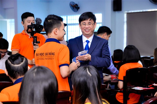 Ảnh: TS Lâm Thành Hiển - Phó Hiệu trưởng LHU tặng vé xe về Tết cho sinh viên. Đây là một trong các hoạt động hàng năm của LHU dành cho sinh viên