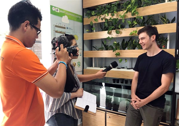 Sinh viên 2 trường nhanh chóng bắt chuyện và trao đổi thông tin
