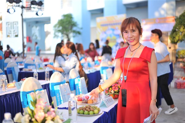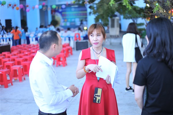 Cô Hoàng Oanh (đứng giữa) trong Lễ khai giảng chào đón tân sinh viên