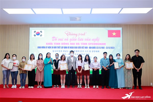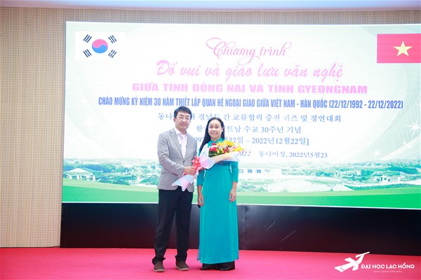 Nhằm tăng cường mối quan hệ ngoại giao và thiết lập tình hữu nghị gắn bó keo sơn giữa Việt Nam – Hàn Quốc, tiến đến kỷ niệm chào mừng 30 năm thiết lập quan hệ ngoại giao giữa Việt Nam - Hàn Quốc (22/12/1992-22/12/2022). Sáng ngày 23/5/2022, tại Hội trường A301, Trường Đại học Lạc Hồng phối hợp với Sở Văn hóa, Thể thao & Du lịch Đồng NaiVăn phòng đại diện tỉnh Gyeongnam, Hàn Quốc tại TP.HCM tổ chức chương trình giao lưu văn hóa giữa hai tỉnh Đồng Nai và tỉnh Gyeongnam, Hàn Quốc.