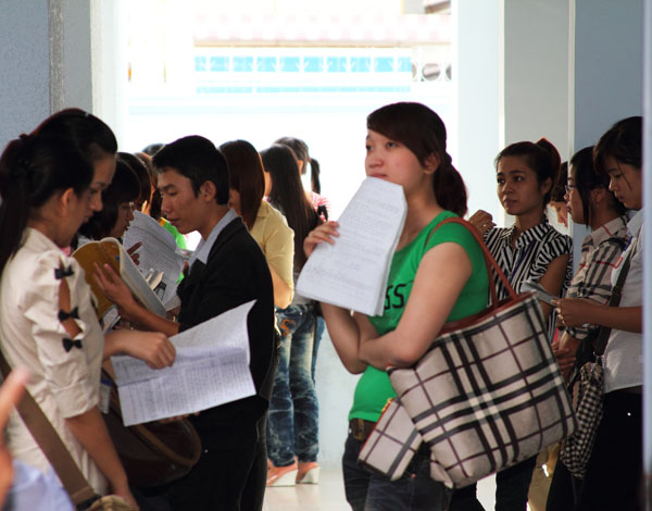 Thí sinh tranh thủ trao đổi trước khi vào phòng