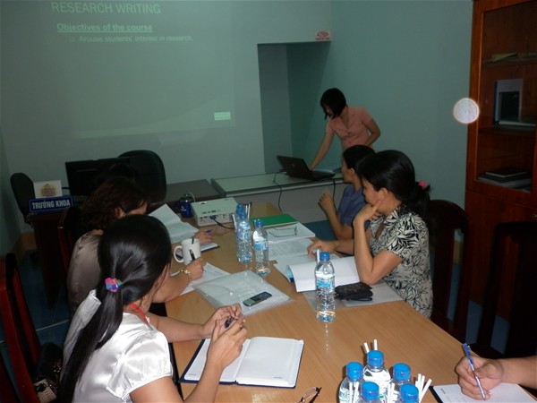 Được sự chỉ đạo của Ban giám hiệu nhà trường về việc biên soạn và thẩm định bài giảng chất lượng cao, vào lúc 14h ngày 25 tháng 08 năm 2011, tại phòng E304, Khoa Ngọai ngữ đã tiến hành thẩm định bài giảng môn Research Writing do cô Lê Thị Bích Vy biên soạn.