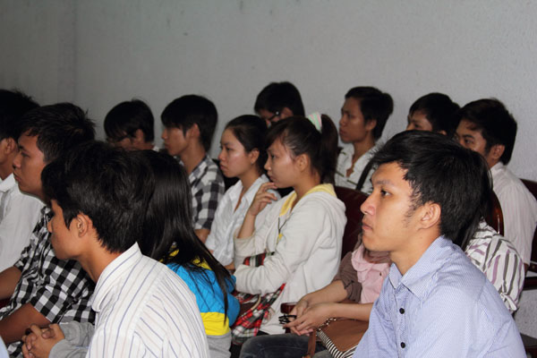Các em chăm chú theo dõi những thông tin về hoạt động Đoàn Hội