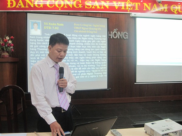Học viên Võ Xuân Nam báo cáo đề tài "Quản trị rủi ro tác nghiệp tại Ngân hàng Thương mại cổ phần Ngoại thương Việt Nam - Chi nhánh Đồng Nai"