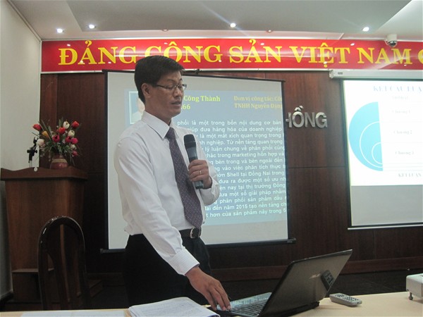 Học viên Nguyễn Công Thành báo cáo đề tài "Một số giải pháp hoàn thiện hệ thống phân phối cho sản phẩm dầu nhờn