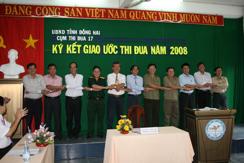 Trước sự chứng kiến của các đồng chí lãnh đạo Hội đồng Thi đua - Khen thưởng tỉnh Đồng Nai, đại diện Hội đồng Thi đua – Khen thưởng khối trường Đại học, Cao đẳng và Trung học chuyên nghiệp Cụm 17 đã ký kết giao ước thi đua năm 2008 với các nội dung thi đua như sau: Thi đua thực hiện tốt nhiệm vụ chính trị được giao; thực hiện tốt chủ trương, chính sách của Đảng, pháp luật của Nhà nước; Xây dựng hệ thống chính trị, tổ chức Đảng, chính quyền, đoàn thể quần chúng trong sạch, vững mạnh; Tổ chức triển khai và thực hiện tốt các chủ trương, nhiệm vụ về công tác thi đua, khen thưởng. Cũng trong buổi làm việc chiều hôm nay các đại biểu đã nhất trí bầu đại diện Cao đẳng Nghề số 8 làm Cụm phó Cụm 17.