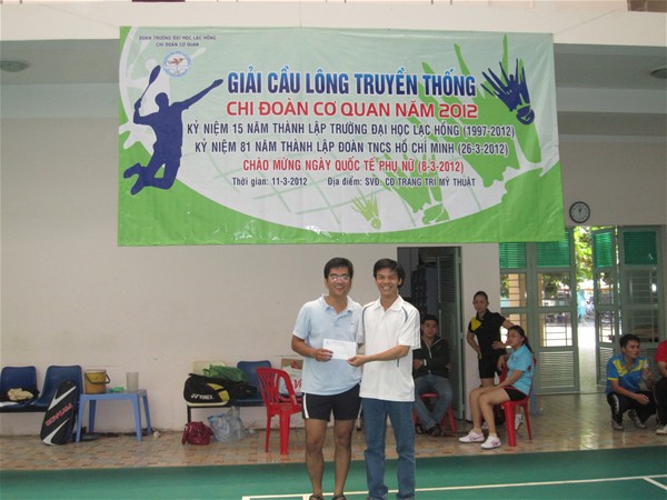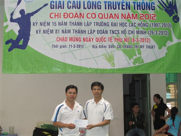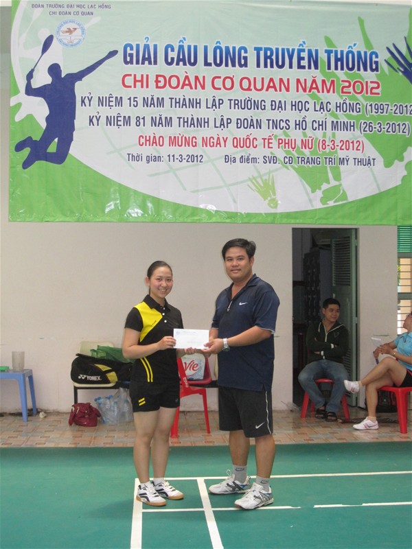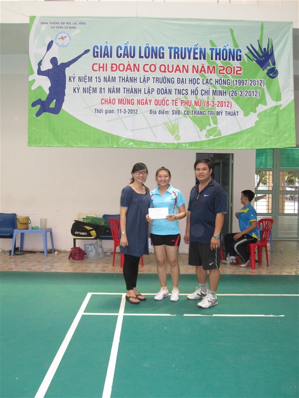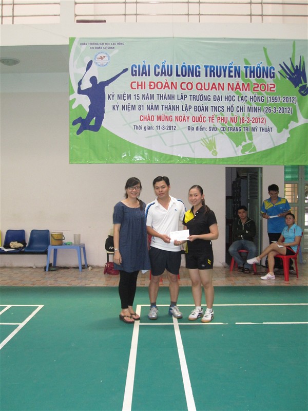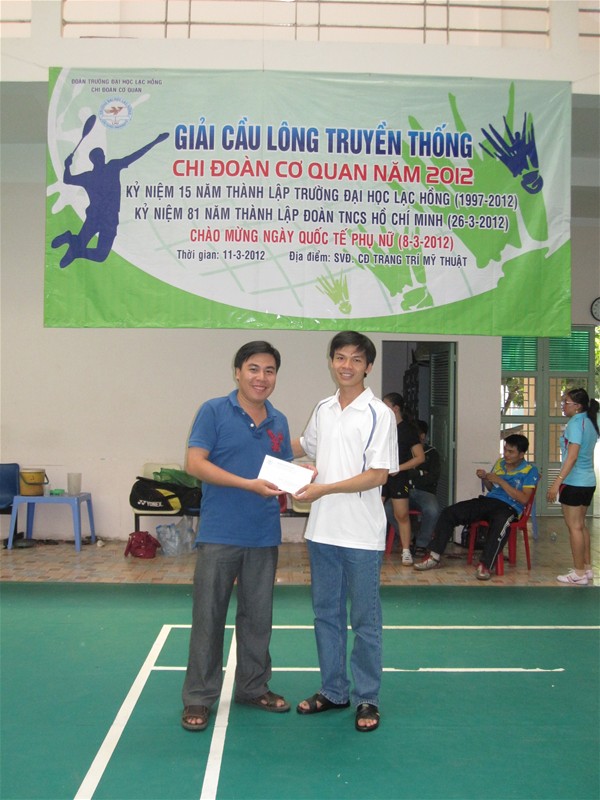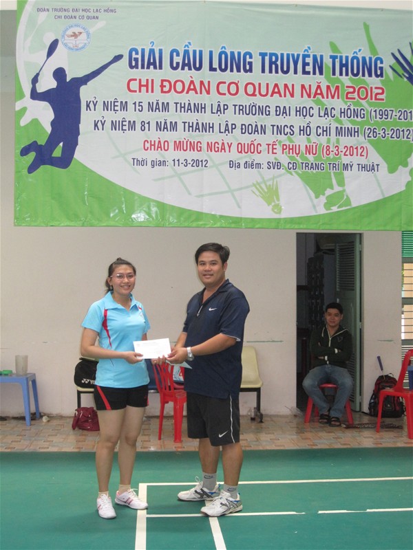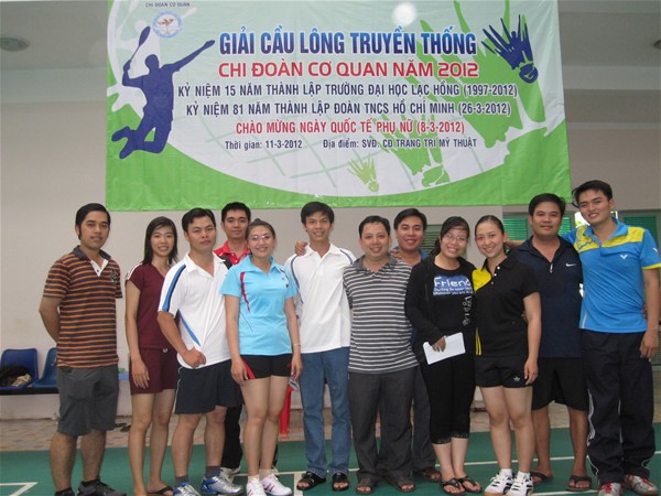 Nhằm kỷ niệm 15 năm thành lập trường Đại Học Lạc Hồng(1997-2012), chào mừng ngày Quốc tế Phụ nữ (08.03), 81 năm ngày thành lập Đoàn(26.3).  Đồng thời tạo phòng trào thi đua lập thành tích chào mừng Đại Hội Đại Biểu Đoàn Trường ĐH Lạc Hồng (nhiệm kỳ 2012-2014) tiến tới Đại Hội Đoàn các cấp. Chi Đoàn Cơ quan tổ chức Giải cầu lông CĐCQ năm 2012.