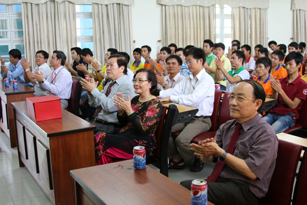 Các thầy cô vui mừng chào đón đoàn thi đấu