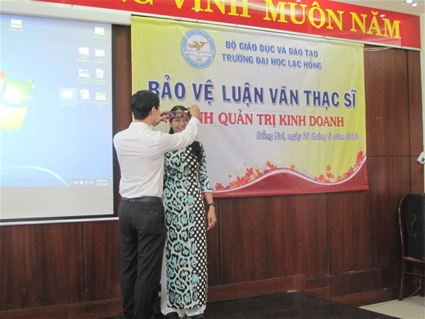Sáng ngày 27/5/2012, Trường Đại học Lạc Hồng đã tổ chức cho các anh chị học viên ngành Quản trị kinh doanh khóa 1 và khóa 2 bảo vệ luận văn trước hội đồng. Buổi bảo vệ được chia thành 2 phiên làm việc, buổi sáng có 6 học viên và buổi chiều có 3 học viên. Cách thức làm việc của hội đồng chấm luận văn: Mỗi học viên có tối đa 15 phút báo cáo nội dung của đề tài; và 20 phút để lắng nghe nhận xét và trả lời câu hỏi từ phía các Thầy Cô trong thành viên hội đồng đánh giá.