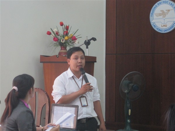 Buổi chiều ngày 20/6/2012, tại phòng B203 của Trường Đại học Lạc Hồng đã tổ chức buổi họp kiểm định chất lượng góp ý cho Tiêu chuẩn 6, trưởng nhóm: cô Nguyễn Hồ Xuân Hương.