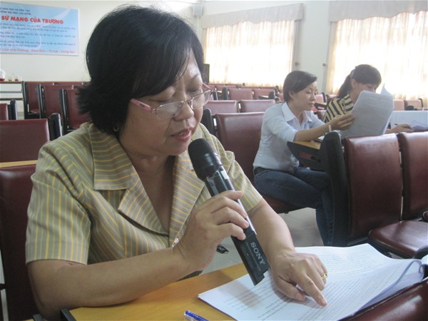 Cô Lê Thu Thủy- nhóm chuyên trách 7, đang góp ý tiêu chuẩn 6...