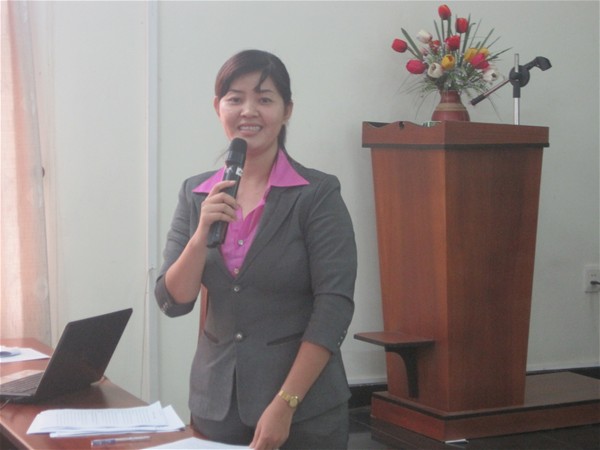 Cô Nguyễn Thị Khang đang báo cáo tiêu chí 6.2 và tiêu chí 6.9 của tiêu chuẩn 6…
