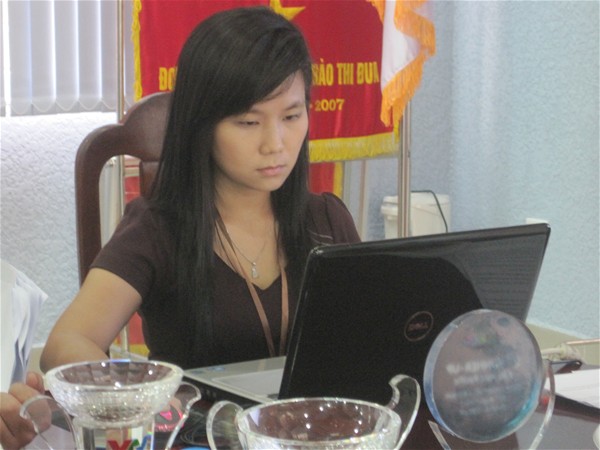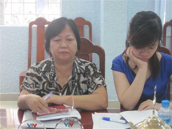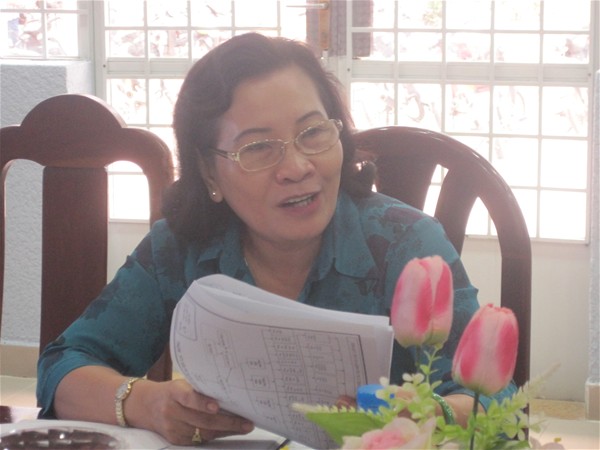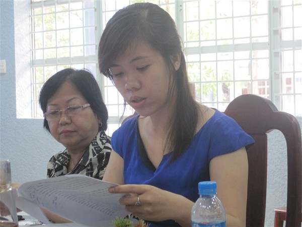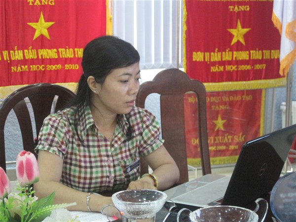 Cô Lê Thu Thủy- nhóm chuyên trách 7, đang góp ý tiêu chuẩn 2 và tiêu chuẩn 10...
