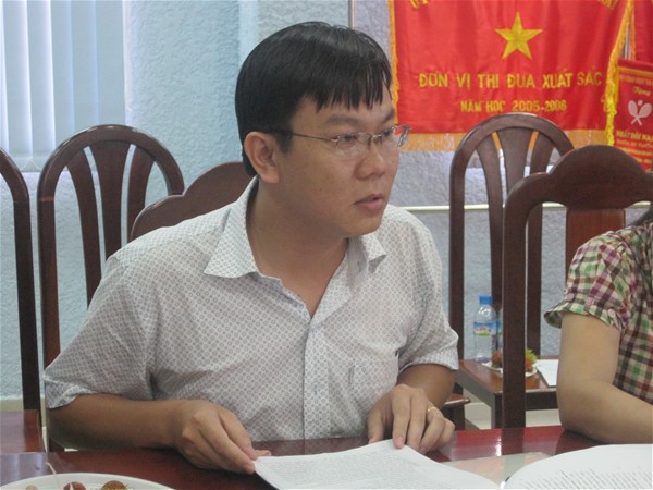 Thầy Huỳnh Cao Tuấn- Trưởng nhóm chuyên trách 9, đang góp ý tiêu chuẩn 2 và tiêu chuẩn 10...