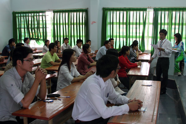 Đúng 6h30 sáng cùng ngày, đồng loạt cả ba hội đồng đã tiến hành sinh hoạt phổ biến quy chế thi. Mặc dù, toàn thể CB, GV, NV luôn được trang bị đầy đủ kỹ năng để thực hiện tốt nhiệm vụ vào các kỳ thi. Nhưng các trưởng điểm thi vẫn sinh hoạt rất kỹ về quy chế, yêu cầu giám thị gác thi kiểm tra kỹ từng túi bài thi, tránh để xảy ra sai xót. Đồng thời nhắc nhở sinh viên giữ thái độ nghiêm túc và đúng mực trong kỳ thi.