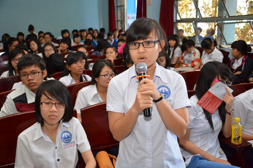 Câu hỏi này làm náo nhiệt cả hội trường. Trả lời câu hỏi, ThS.Lâm Thành Hiển chia sẻ “Nếu các em biết điểm thi, điểm trúng tuyển mà chưa đến đợt gọi nhập ngũ thì cần đăng ký nhập học nhanh chóng. Các em cần chọn NV1 cho chính xác, nếu thi không đạt, phải xét tuyển NV2 thì thời gian xét tuyển quân sự đến, nế chưa kịp làm thủ tục nhập học lúc đó các em vẫn lên đường nhập ngũ. Năm nay, các trường xét tuyển thành nhiều đợt, đợt xét tuyển sau không bao giờ thấp hơn điểm sàn nên các em cần chú ý”. Qua câu trả lời của ThS.Lâm Thành Hiển cho thấy, các thí sinh cũng nên lưu ý, sau khi đã chọn được ngành, nghề thì càng phải cân nhắc chọn trường phù hợp với sức học của mình. Điều đó cũng giúp các em tránh tình trạng mất quá nhiều thời gian khi chờ xét tuyển NV2 và NV3.