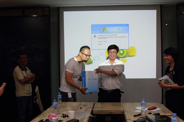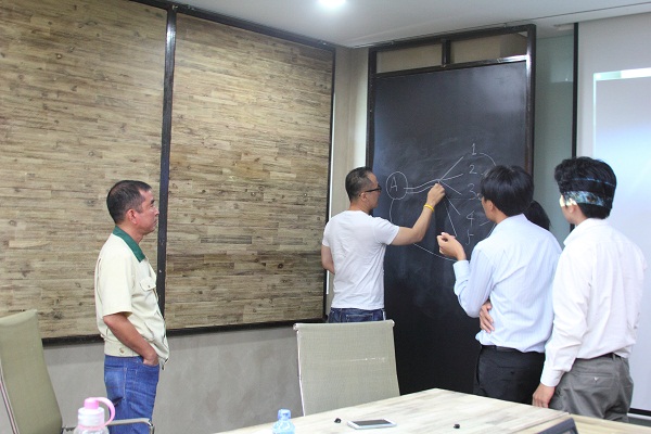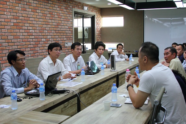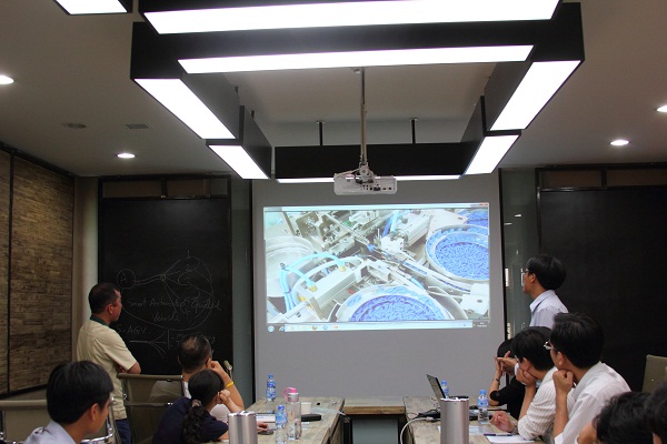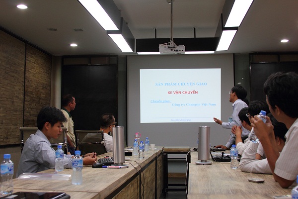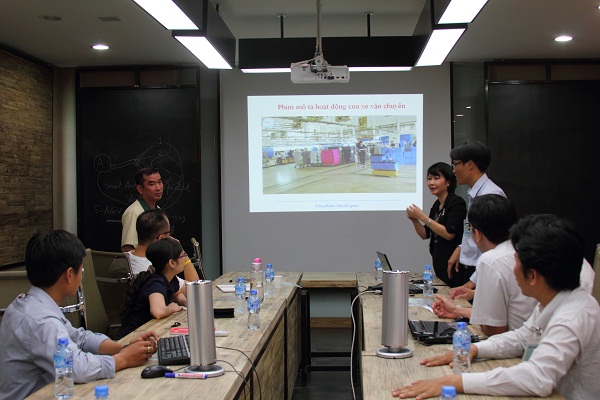 Nắm bắt được nhu cầu sản xuất của Taekwang, ĐHLH đã đặt vấn đề về nhiều sản phẩm đã từng được chuyển giao thành công và nhanh chóng thu hút sự quan tâm về sản phẩm “Xe vận chuyển hàng thông minh”. Trước mắt, đây là sản phẩm sẽ tiết kiệm khá nhiều chi phí nhân công và thời gian cho khâu vận chuyển hàng hóa tại Taekwang. Về phía đối tác đã có nhiều ý kiến đánh giá, chia sẽ thông tin, góp ý chế tạo và thảo luận vấn đề rất sôi nổi tạo nhiều phấn khởi cho buổi làm việc của đôi bên. Đồng thời đã đặt ra không ít “đòi hỏi” cho tính năng của sản phẩm .