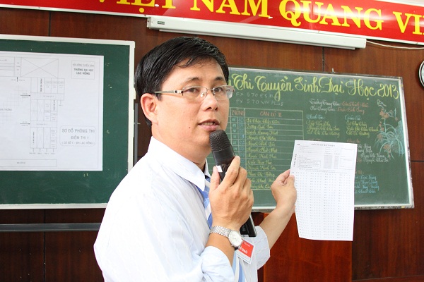 Sau đó trưởng điểm thi tiến hành gọi tên giám thị lên bốc thăm phòng thi, đảm bảo tính khách quan trong công tác phân bổ giám thị. Nhằm tránh tình trạng tạo khe hở cho thí sinh gian lận tài liệu thông qua giấy nháp của môn thi trước. Đại học Lạc Hồng đã sử dụng 3 màu giấy nháp khác nhau cho mỗi buổi thi.