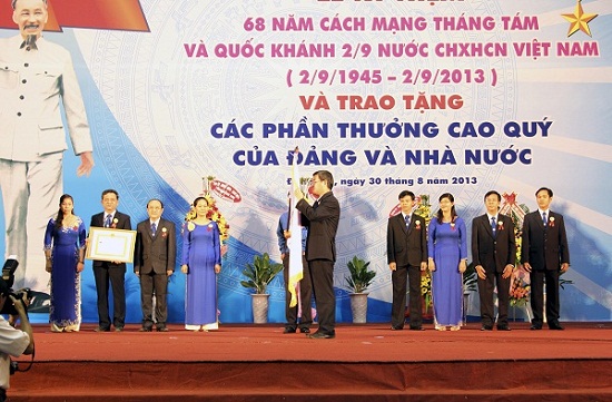 Hình ảnh Ông Đinh Quốc Thái - Chủ tịch UBND Tỉnh đeo Huân Chương Lao động Hạng 3