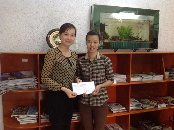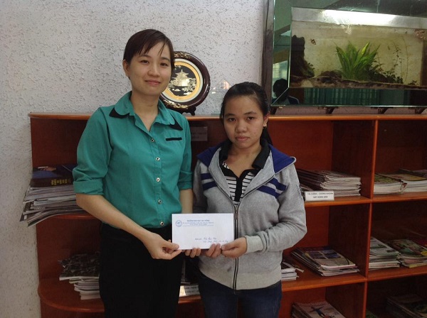 Cô Vũ Thị Hiến (BTC) trao giải nhất cho SV.Trần Vĩnh Phát