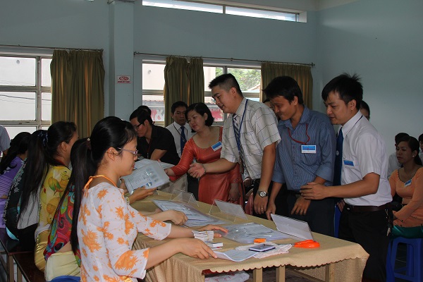 Sáng nay, hơn 1.500 thí sinh đăng ký thi khối B,C,D  đợt 2 tại ĐH Lạc Hồng đã đến địa điểm thi làm thủ tục dự thi, nghe phổ biến quy chế, chỉnh sửa sai sót trên giấy báo dự thi.