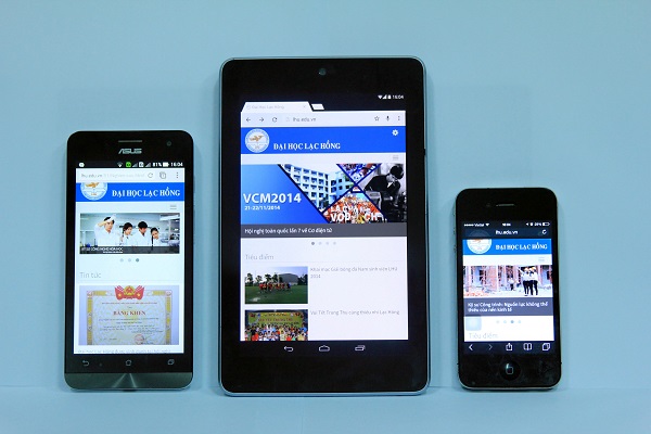 Trước tốc độ phát triển của các thiết bị công nghệ cầm tay như: iPhone, iPad, Laptop… sự đa dạng của các dòng máy tính bảng và smartphone. Qua đó phát triển nó ở mọi ứng dụng cũng như hệ điều hành: Android, iOS, Windows phone… Website mới của Đại học Lạc Hồng có thiết kế độ phân giải đa dạng; chế độ co giản, tương thích với mọi kích cỡ của thiết bị và hệ điều hành kể trên.