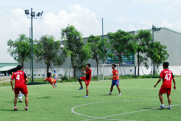 Trận chung kết giữa Khoa CĐ-ĐT (áo đỏ) và Khoa KTCT (áo cam)