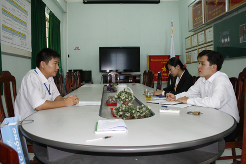 Ths Nguyễn Văn Tân đang trao đổi với đại diện Ngân hàng Đông Á