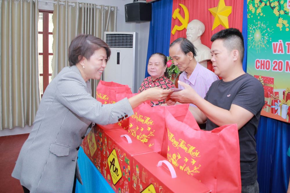 Ts Đỗ Thị Lan Đài - Chủ tịch hội đồng trường trao những phần quà hỗ trợ cho các nạn nhân chất độc da cam/dioxin