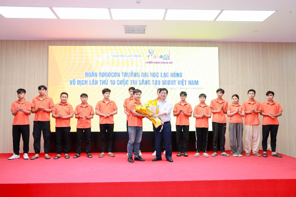 14:00 chiều ngày (17/6/2025) đoàn Robocon Lạc Hồng (LH - UDS, LH-WARRIORS, LH-TKCB, LH-AS và LH - TTF ) đã về tới trường sau thành công tại giải đấu toàn quốc. Sau đó, đoàn đã tham dự hoạt động chào đón và chúc mừng chiến thắng do nhà trường tổ chức tại hội trường A301.