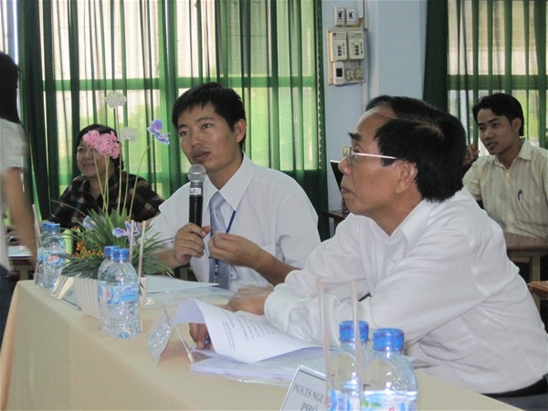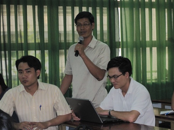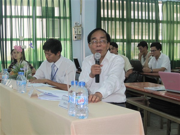 Thầy TS. Trần Hành nhận xét và góp ý cho từng đề tài.