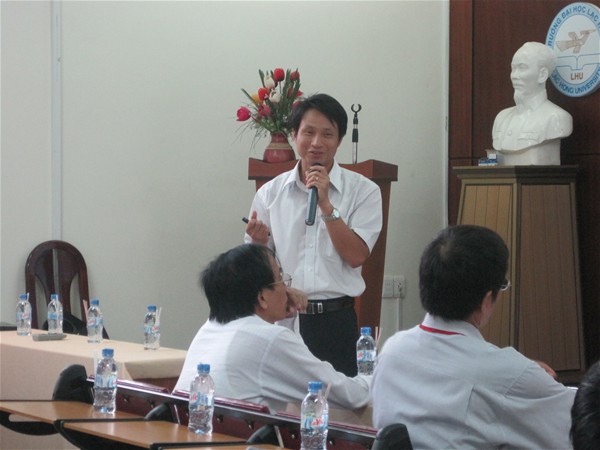 Các thầy cô và các bạn sinh viên chú ý lắng nghe phần trình bày của TS. Phạm Ngọc Nam