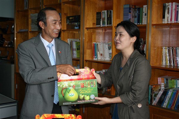 Ths Trần Hữu Yến Loan tặng quà lưu niệm cho khách mời