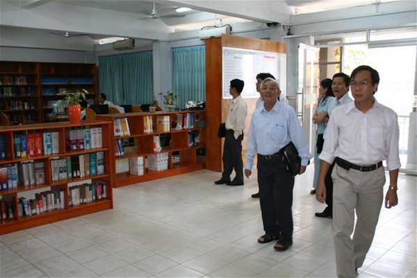 Sau buổi làm việc, thầy Huỳnh Cao Tuấn đã dẫn đoàn tham quan phòng Server, hệ thống phòng máy, thư viện của trường Đại học Lạc Hồng.