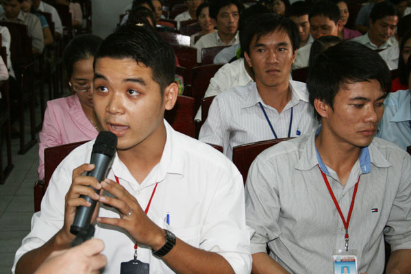 Các thầy cô trực tiếp trao đổi với TS Huỳnh Văn Sơn các vấn đề thường gặp trong ứng xử hàng ngày