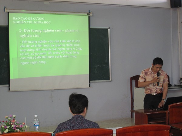 Sau khi nhận quyết định giao đề tài luận văn thạc sĩ, 24 anh chị học viên lớp cao học quản trị kinh doanh khóa 1 đã có thời gian làm việc, trao đổi với giáo viên hướng dẫn về đề tài. Và vào ngày 16/01/2011vừa qua, các học viên đã báo cáo đề cương đề tài của mình trước hội đồng khoa học của Trường.