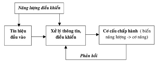 -  Năng lượng điều khiển: bao gồm phần thông tin  (điện tử, điện cơ, khí, dầu, quang học, sinh học) và công xuất (điện, khí và thủy lực).