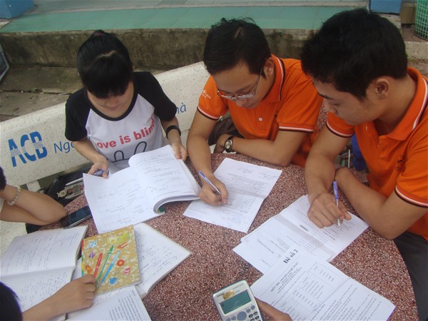 Các em sinh viên ngoài giờ học phụ đạo do khoa tổ chức, còn tranh thủ tổ chức học nhóm để chuẩn bị cho kỳ thi kết thúc môn đạt kết quả cao.