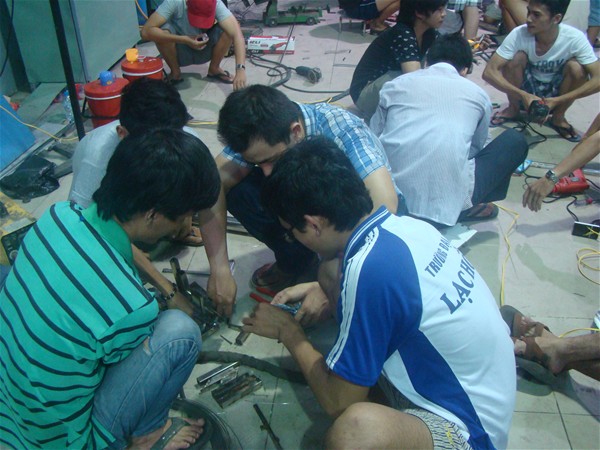 Sau buổi báo các ý tưởng robot không khí tại trung tâm công nghệ robot lúc nào cũng nhộn nhịp. Trong đội của mình các bạn được chỉ đạo viên định hướng theo sự đam mê về cơ khí, mạch điện và lập trình hoặc có thể đảm nhận qua các buổi hướng dẫn.