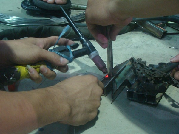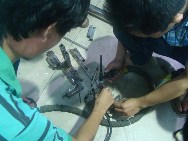 Sau hướng dẫn của thầy chỉ đạo viên và tìm hiểu thêm từ các tài liệu hướng dẫn hàn Tig các thành viên trong nhóm tiến hành dùng các đoạn Inox vụn để tập hàn. Mới đầu các em cũng gặp khó khăn khi hàn mà hai thanh inox không dính vào nhau, mối hàn bị thủng, mối hàn quá to hoặc mối hàn bị co rút làm sai kích thước…nhưng không vì thế mà các em bỏ đi niềm đam mê của mình, các em vẫn tiếp tục cố gắn sau khoảng vài buổi tập hàn thì các em đã nắm được kỹ thuật.